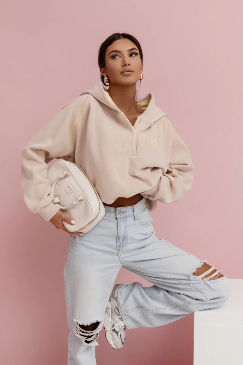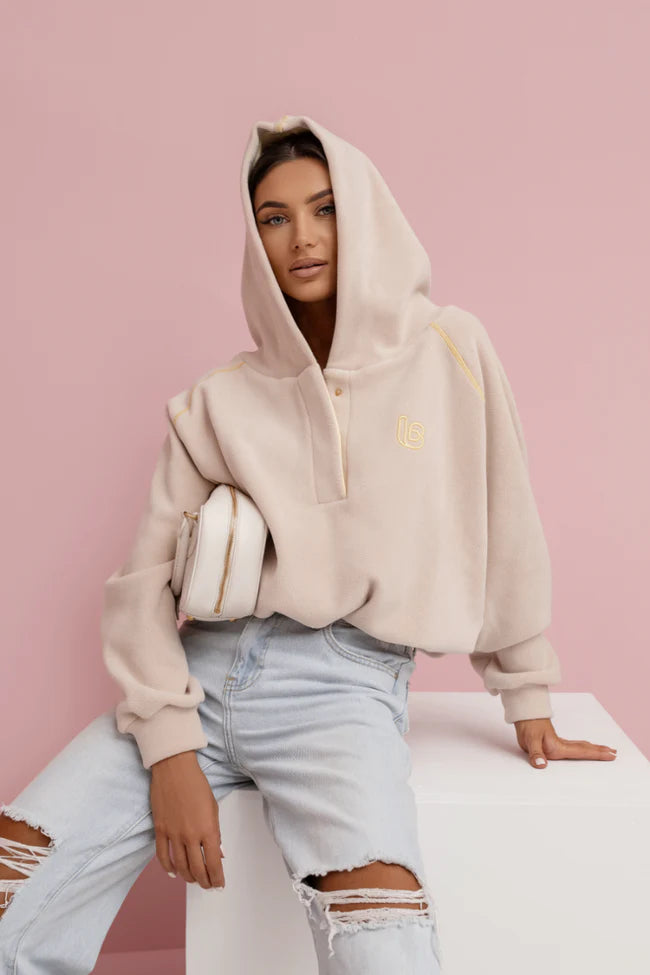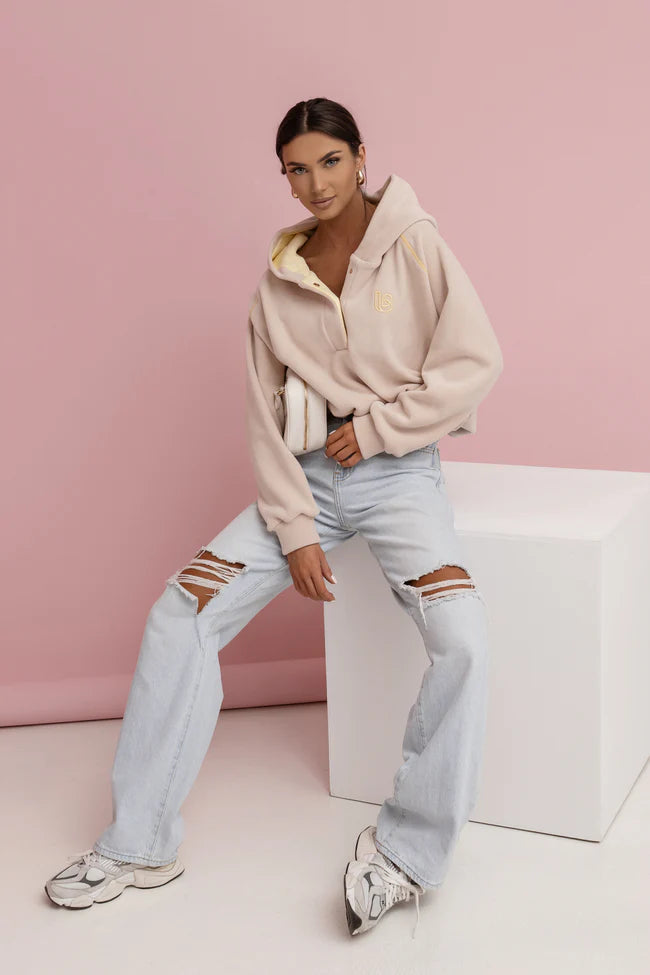 Przedstawiamy bluzę polarową LOOM w kolorze beżowym, idealny wybór na chłodne dni oraz wieczory. Wykonana z wysokiej jakości materiałów, łączy w sobie komfort noszenia oraz modny design. Dzięki zastosowaniu 95% bawełny i 5% elastanu, bluza jest nie tylko przyjemna w dotyku, ale również elastyczna, co zapewnia swobodę ruchów. Nasza bluza charakteryzuje się starannym wykonaniem oraz przemyślanym krojem. Długość od szczytu ramienia wynosi 63 cm, z kolei długość od środka tyłu to 59 cm. Szerokość pod pachami to 69 x2 cm, a szerokość na dole to 59 x2 cm, co sprawia, że bluza doskonale dopasowuje się do sylwetki. Długie rękawy o długości 68 cm gwarantują dodatkową ochronę przed zimnem, co czyni tę bluzę doskonałym wyborem na każdą porę roku. Jej beżowy kolor jest uniwersalny i łatwy do zestawienia z innymi elementami garderoby, co daje szerokie możliwości stylizacji. Bluza polarowa LOOM to produkt, który możesz nosić zarówno na co dzień, jak i na specjalne okazje. Idealnie sprawdzi się w zestawieniach z dżinsami, spódnicami czy joggerami. Dzięki swojej prostocie i elegancji, z powodzeniem ubierzesz się w nią do pracy, na spotkanie ze znajomymi czy na weekendowy wypad za miasto. Nie czekaj i dodaj do swojej garderoby bluzę polarową LOOM w kolorze beżowym. To doskonały wybór, który z pewnością podkreśli Twój styl i zapewni komfort noszenia w każdej sytuacji. SKŁĄD: 95% bawełna 5% elastan