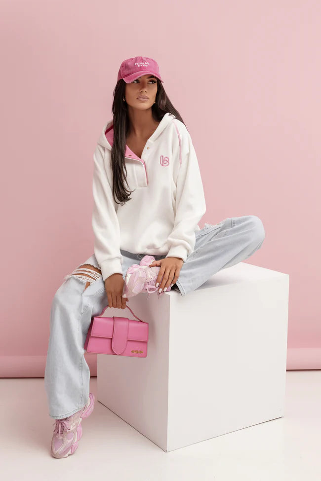 Odkryj naszą wyjątkową bluzę polarową LOOM w eleganckim kolorze ecru z różowymi akcentami, która doskonale łączy w sobie styl i komfort. To idealny wybór dla osób, które cenią sobie wygodę, a jednocześnie pragną wyglądać modnie. Dzięki starannemu doborowi materiałów, bluza zapewnia doskonałe dopasowanie oraz miękkość w dotyku, co sprawia, że jest idealna na różne okazje. Bluzę uszyto z 95% bawełny i 5% elastanu, co gwarantuje nie tylko przyjemność noszenia, ale także wytrzymałość i odporność na uszkodzenia. Materiał zapewnia odpowiednią wentylację, dzięki czemu możesz czuć się komfortowo nawet w cieplejsze dni. Nowoczesny krój bluzki perfekcyjnie podkreśla sylwetkę, a delikatne detale dodają jej kobiecego charakteru. Specyfikacja wymiarów producenta sprawia, że możesz mieć pewność, że produkt idealnie pasuje do Twojej figury. Oto kluczowe informacje dotyczące rozmiaru bluzki: Ta elegancka bluza jest idealnym wyborem na codzienne wyjścia, spotkania z przyjaciółmi czy też relaks w domowym zaciszu. Łatwo łączy się z różnorodnymi stylizacjami – od dżinsów po spódnice, co czyni ją niezwykle wszechstronnym elementem garderoby. Dzięki swojemu uniwersalnemu designowi, staje się niezwykle atrakcyjnym dodatkiem na każdą porę roku. Nie czekaj, dodaj bluzę polarową LOOM do swojej kolekcji i ciesz się komfortem oraz stylem, które oferuje. Zainwestuj w odzież, która nie tylko podniesie Twój codzienny look, ale także zapewni maksymalną wygodę w każdych warunkach. SKŁĄD: 95% bawełna 5% elastan